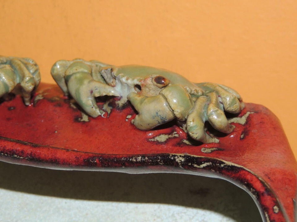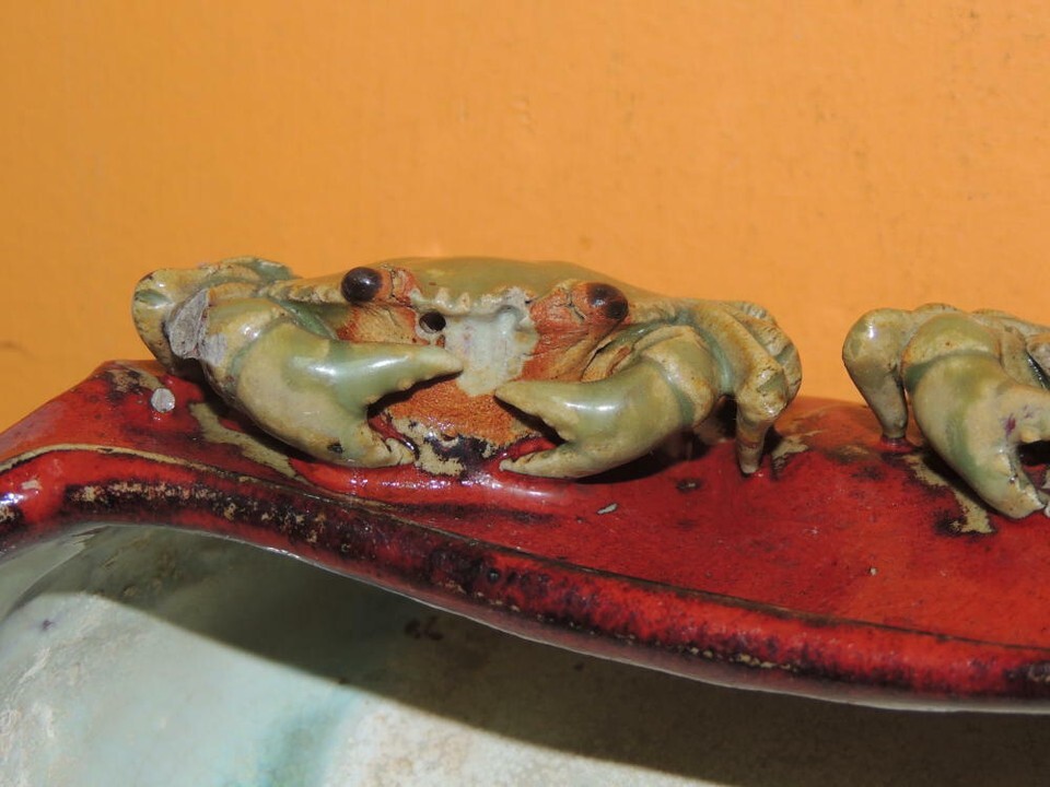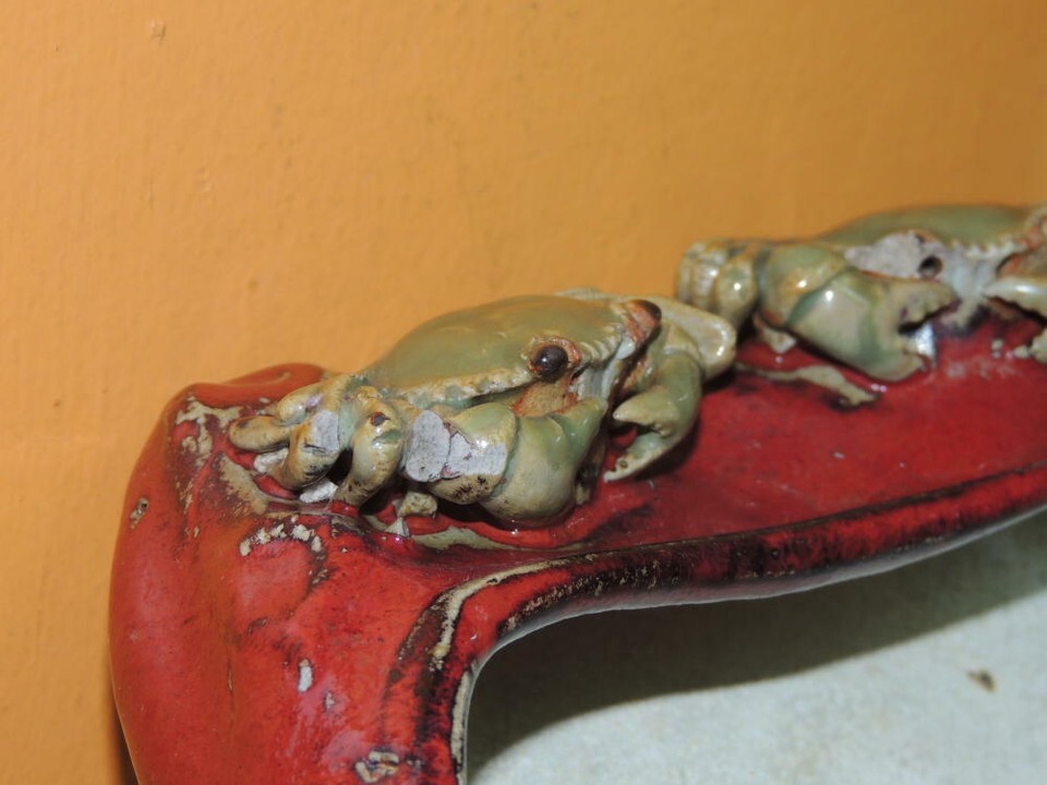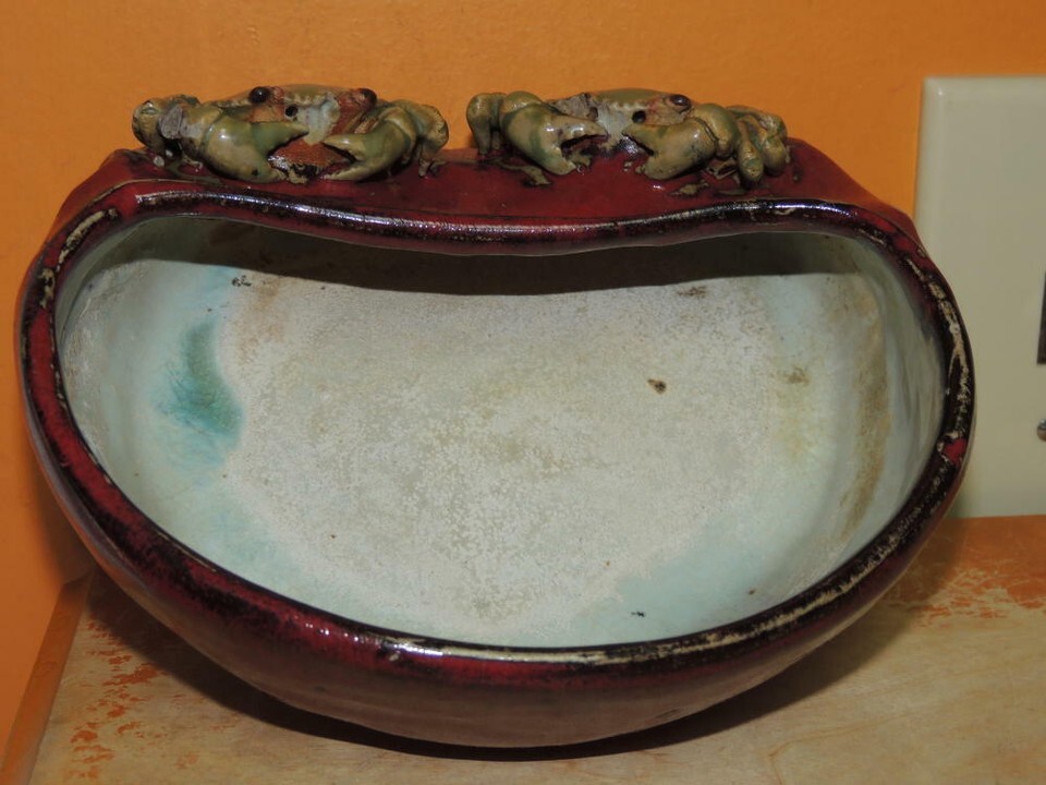 Chinese Mud Man Men pot 7.5"x6" oxblood celadon crab crabs bonsai Mudman Antique
