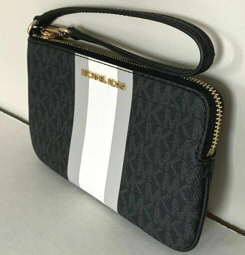 New Michael Kors Jet Set Travel Large top zip wristlet Black multi