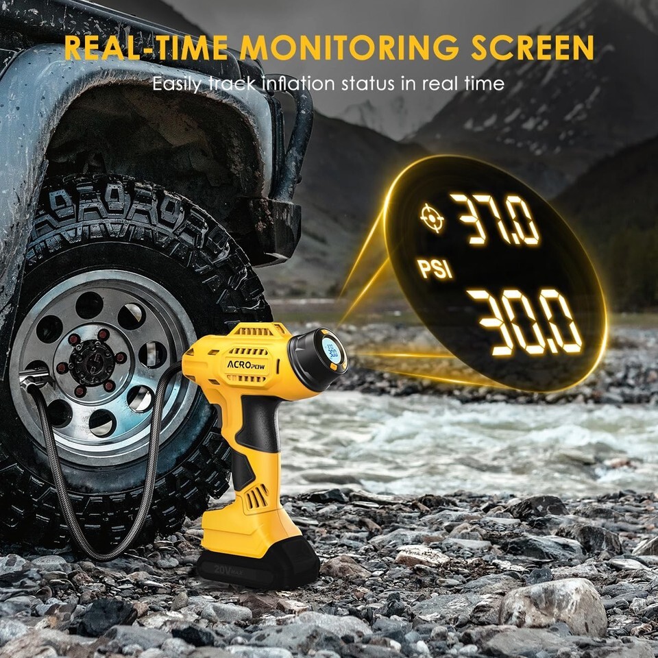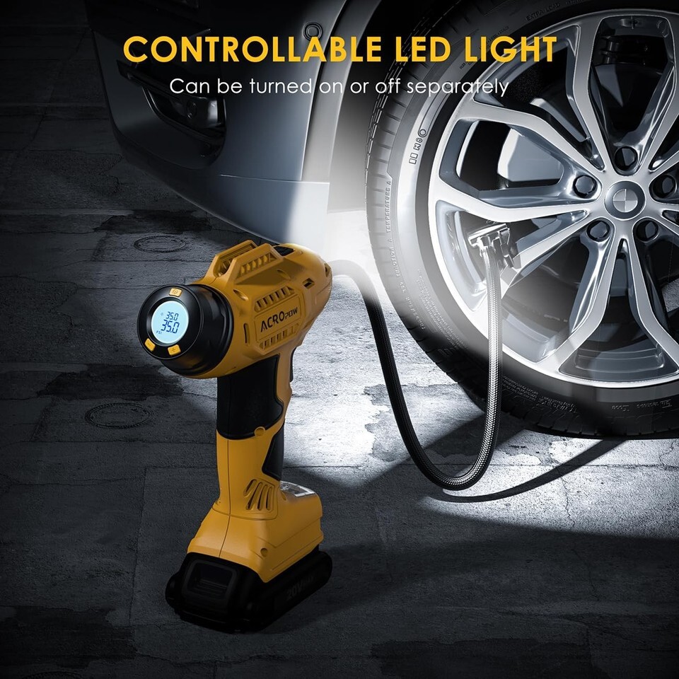 ?SEPARATE BUILT-IN LED LIGHT ERGONOMIC DESIGN? The inflator for car is built-in bright LED working light that illuminates dark space. The Led has an individual control switch and you can decide when to turn on/off it. Insulated soft-grip handle has specially designed texture that improves comfort and reduce fatigue when holding a long-time. ACROPOW inflator is made with wear-resistant nylon braided inflatable tube, anti-freeze not break, explosion-proof and high temperature resistant