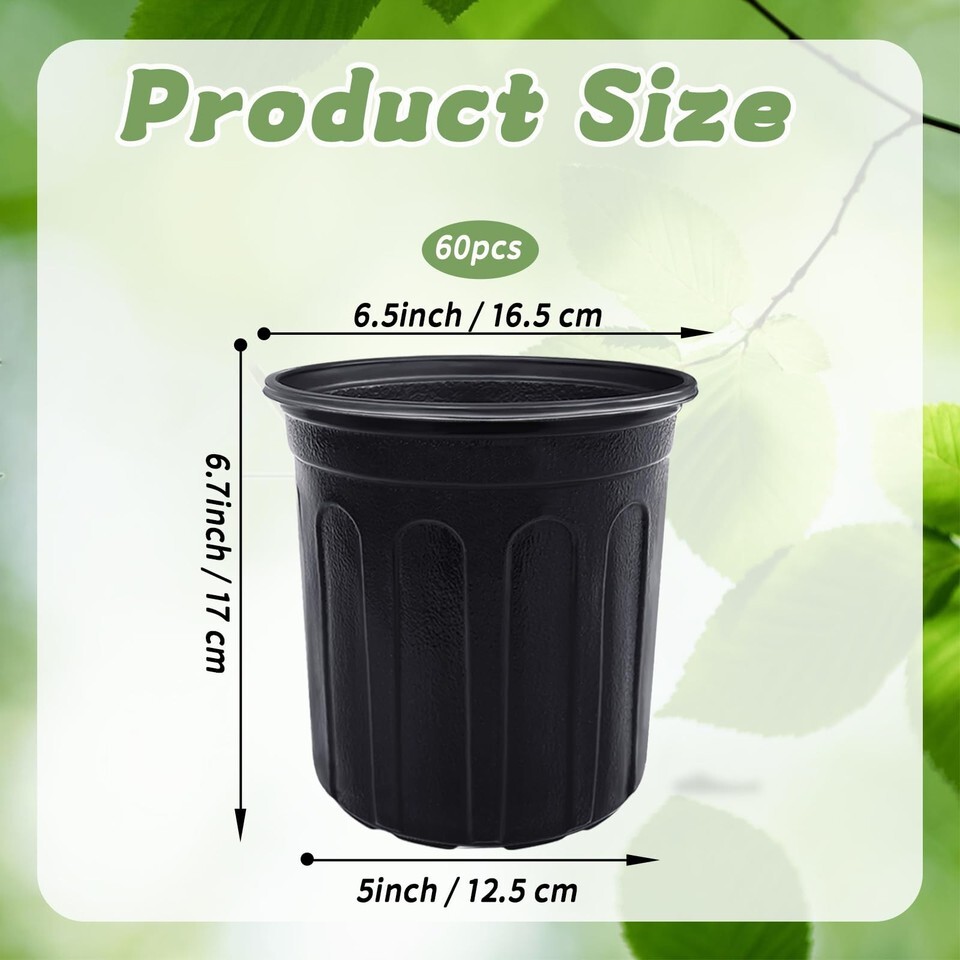 60 Pack 1 Gallon Plant Nursery Pots,Plastic Seed Starter Pot with Drainage Holes