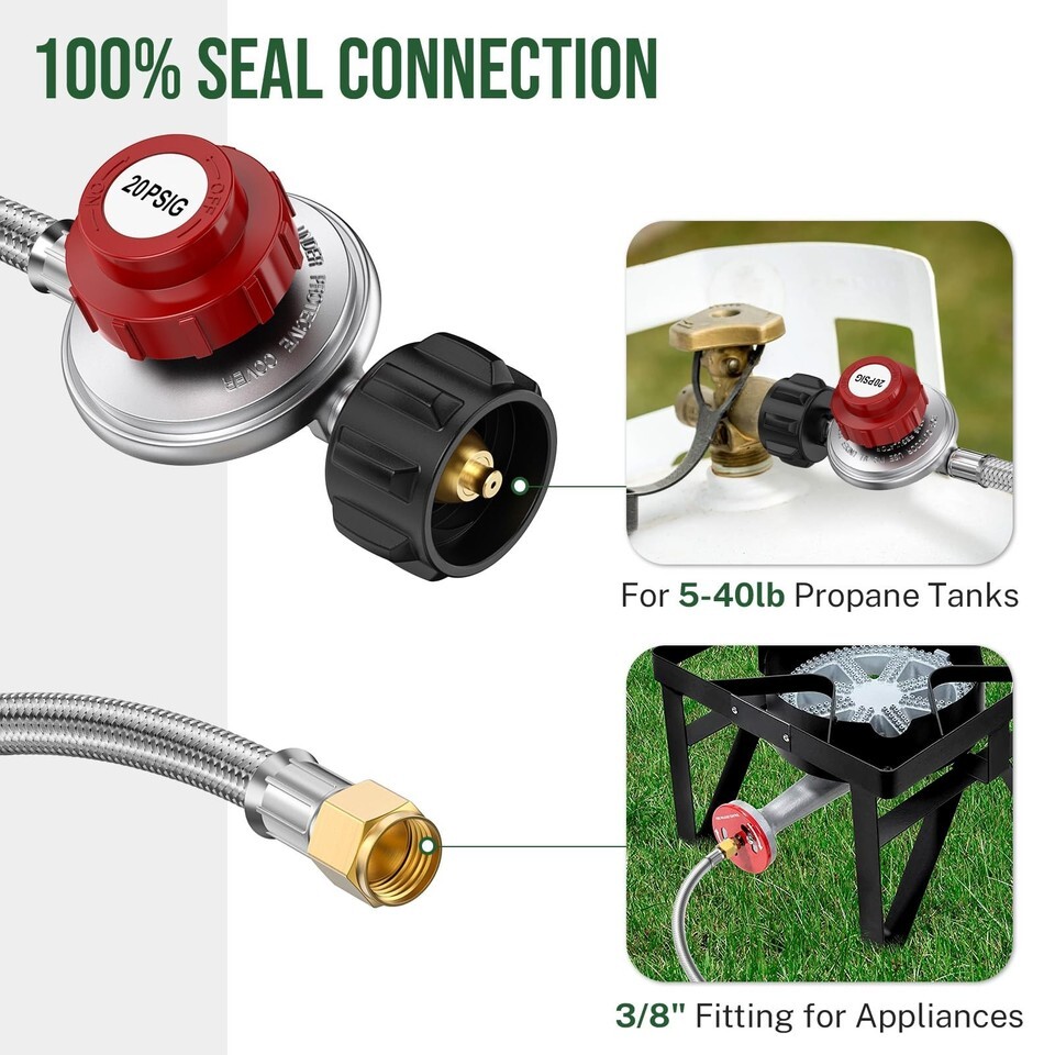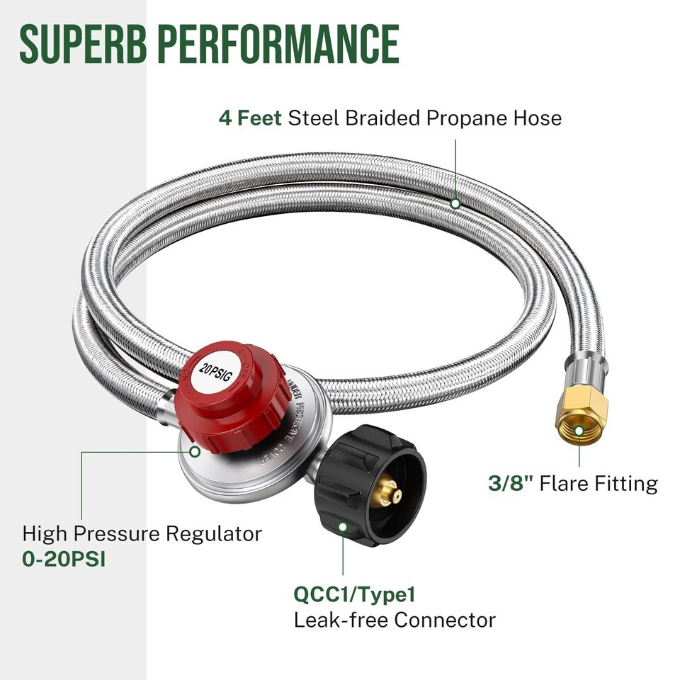 4 Pies Regulador De Gas Propano 3/8 Y Manguera 0 a 20 PSI Ajustable Para Estufa