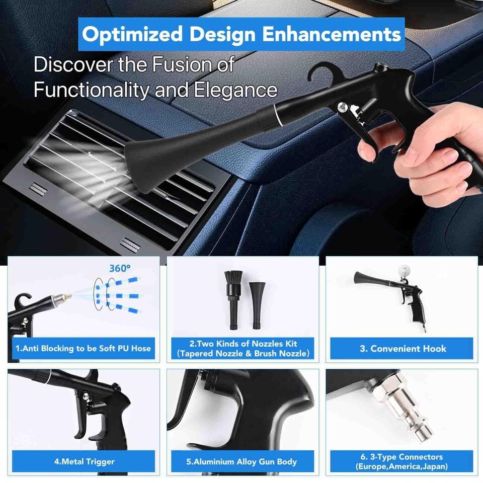 Car Cleaning Gun Detailing Interior Dryer Air Blow Gun, High Pressure Blower Gun