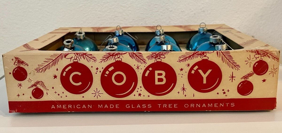 2 1/4” Vintage Coby American Made Mercury Glass w/ Ornaments Christmas 1960s 12