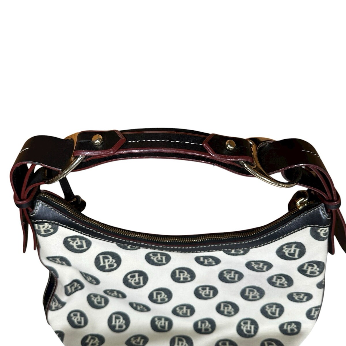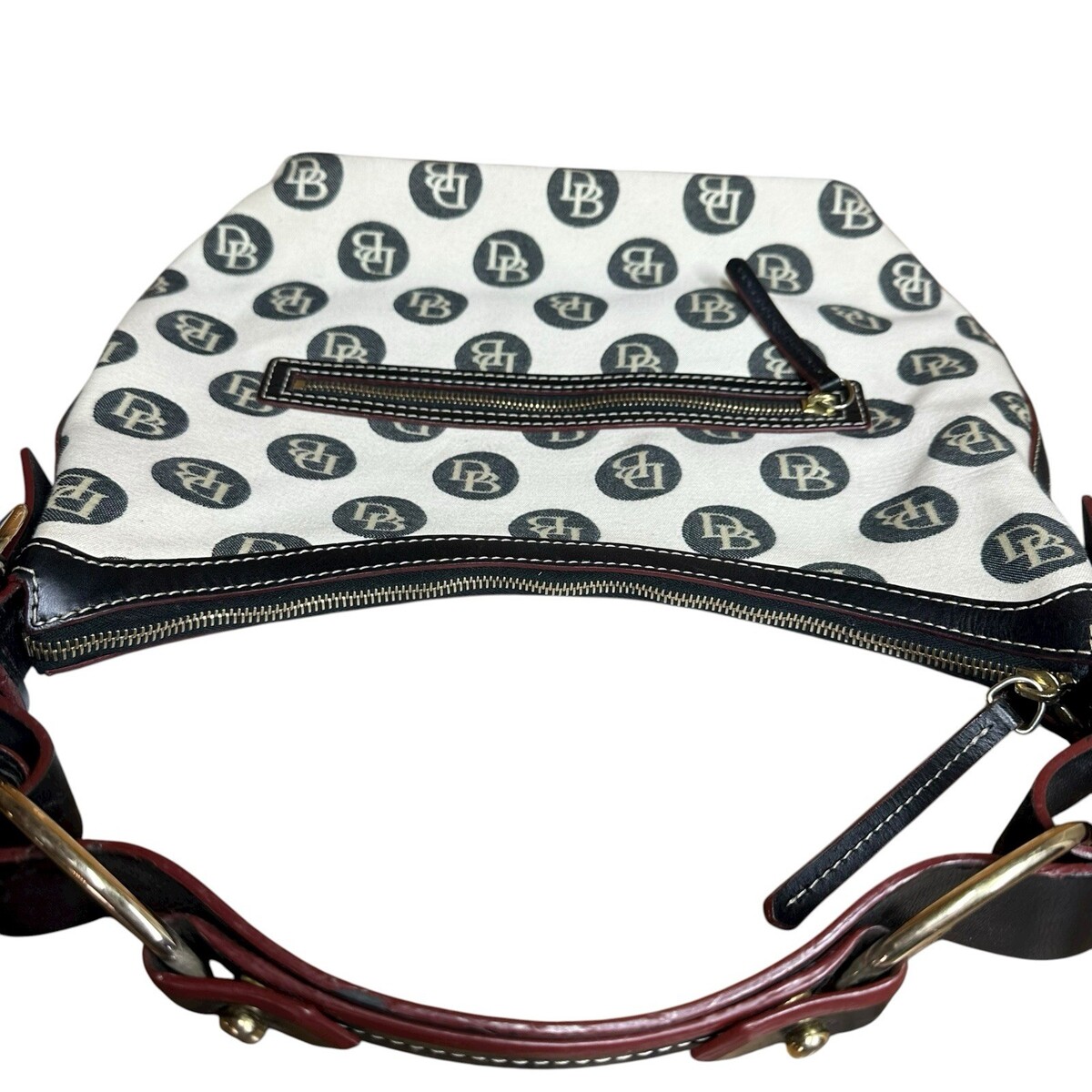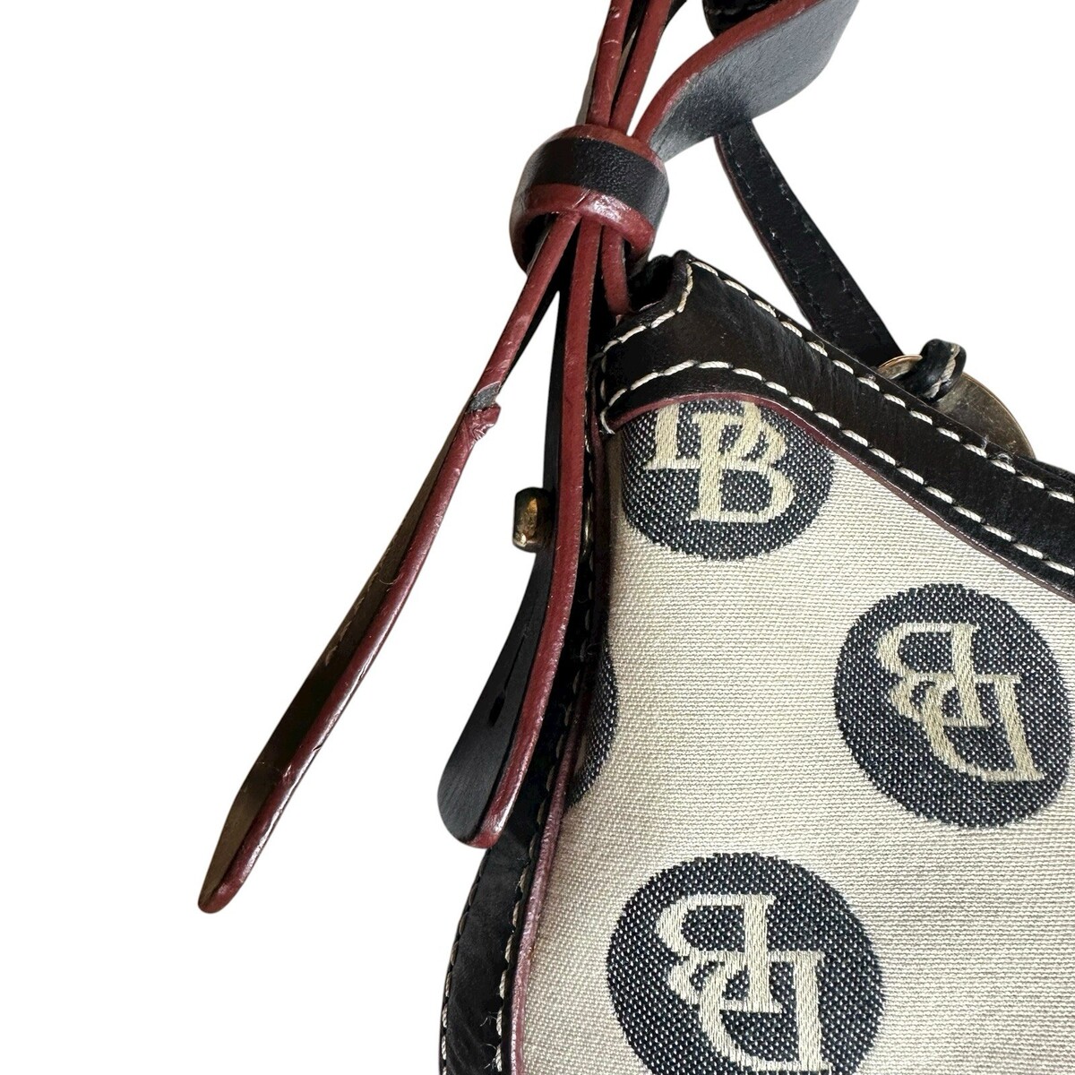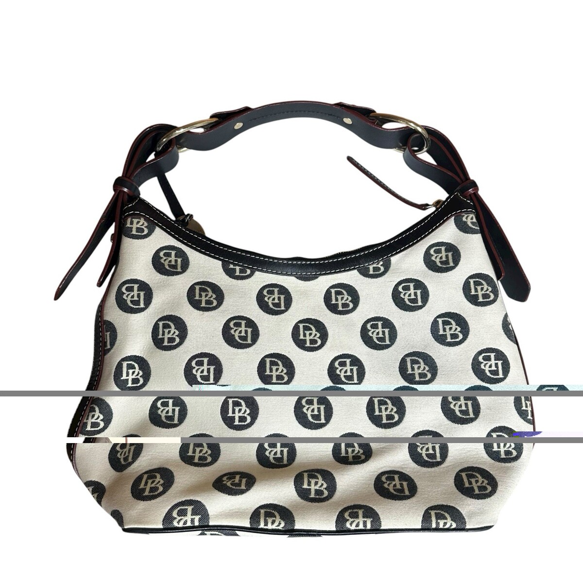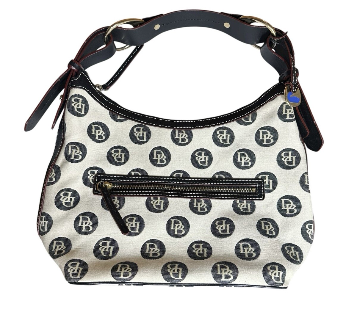 Vtg Dooney & Bourke Monogram Shoulder Bag Purse Ivory Black Leather Trim 10.5x15
