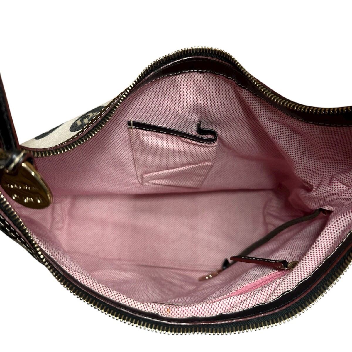 Vintage Dooney Bourke Monogram Shoulder Bag Purse Ivory Black Leather Trim and Shoulder Strap.