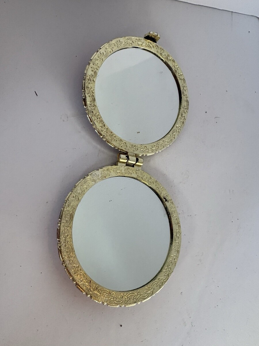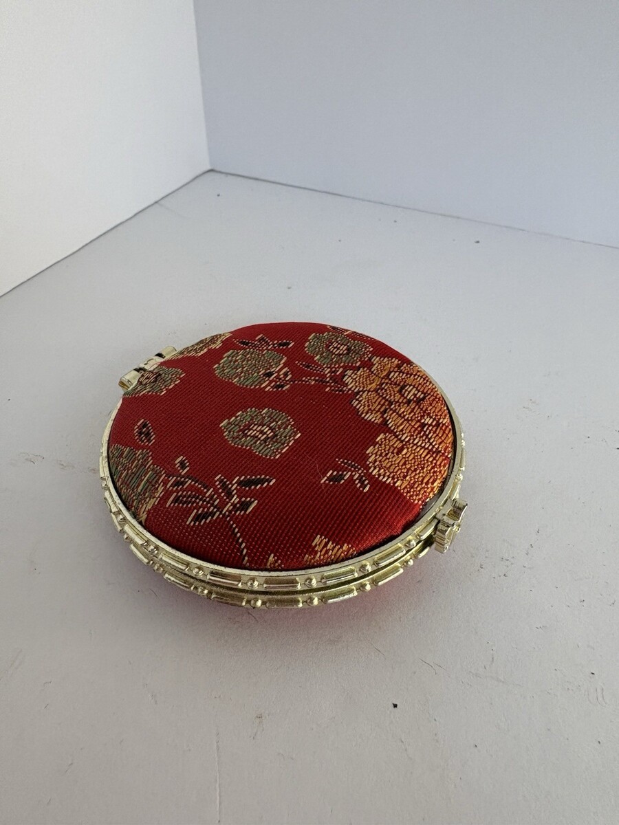 Vintage Two Sided Round Padded Silk Embroidered Mirror Compact Red ph193