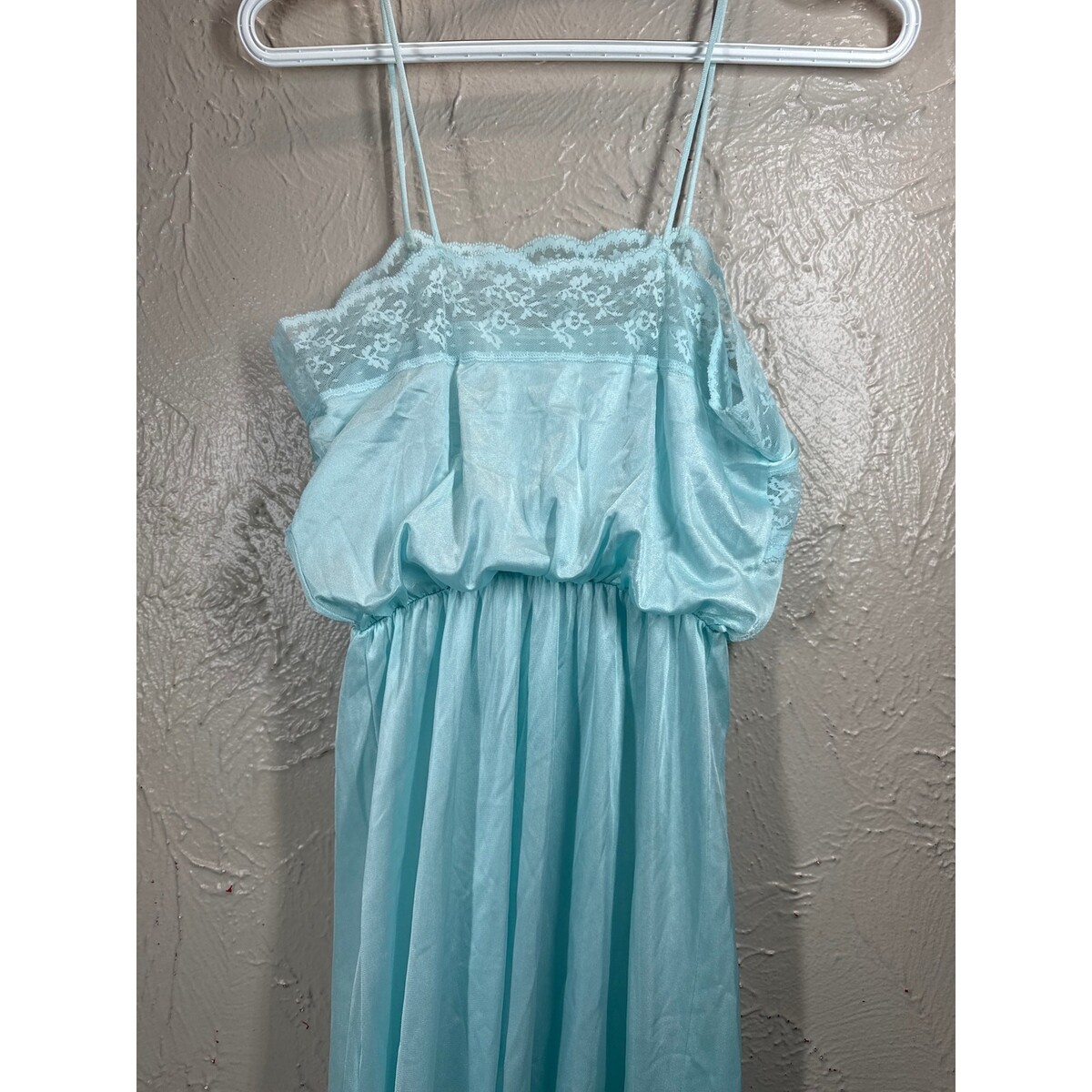 Flair Long Nightgown Satin Light Blue Lingerie Vintage Petite Small PS USA