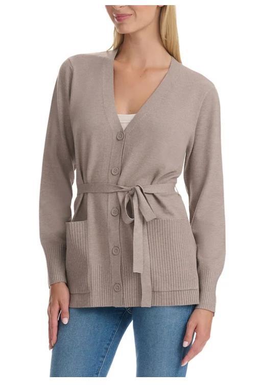 Splendid Womens Cardigan Taupe Sweater Belted Long Sleeves Button-Front Soft