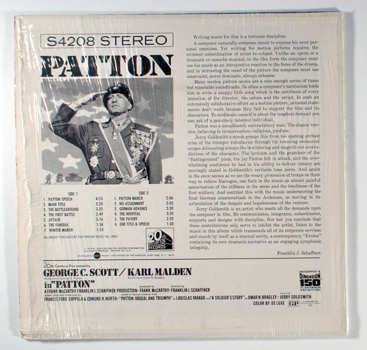 Patton (1970) Vinyl LP Soundtrack, Jerry Goldsmith, George C. Scott