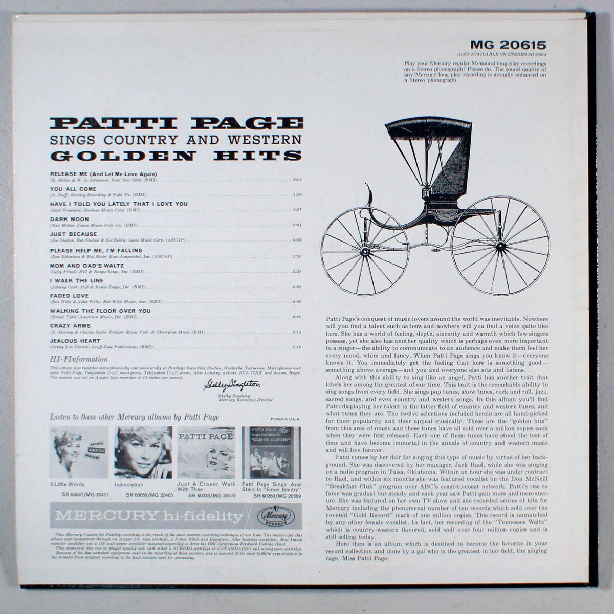 Patti Page - Sings Country and Western Golden Hits (1961) Vinyl LP Dark Moon