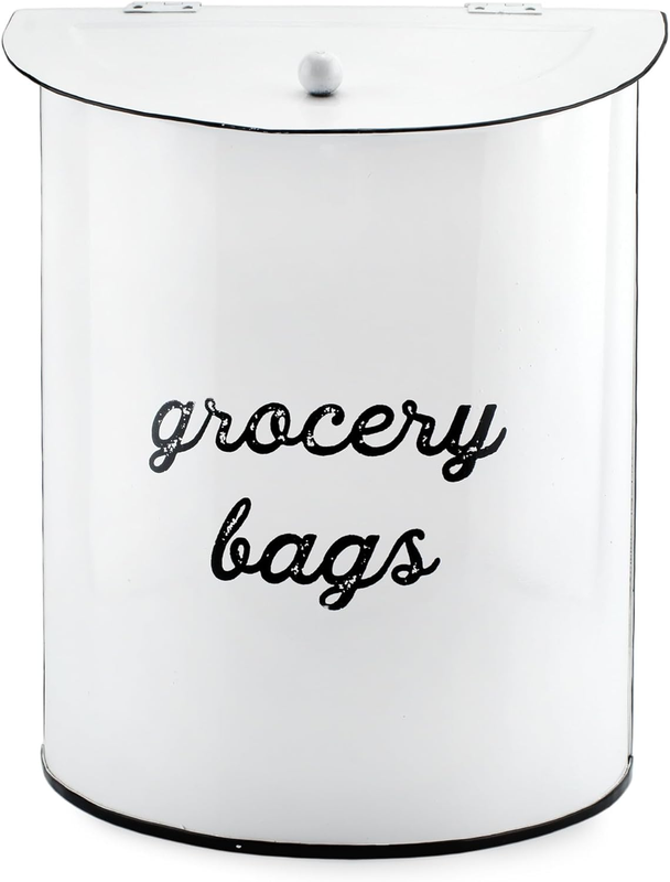 Keep your kitchen or laundry room tidy with this vintage-inspired grocery bag holder. Crafted from durable enamel-coated steel, this dispenser provides a charming way to store and reuse plastic bags. Its wall-mounted design offers easy access while complementing your farmhouse-style decor.