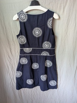 Boden Embroidered Sleeveless Sheath Dress Navy White Cotton Lined US Sz 10