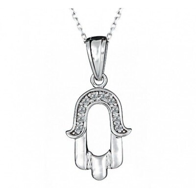 Diamond Hamsa Handanhanger jüdische Halskette 16 "14K Weißgold 0,19 ct