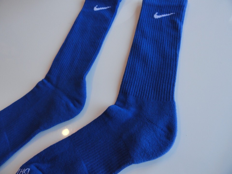 TWO PAIR NIKE EVERYDAY PLUS Performance Cushion Crew Socks ROYAL BLUE WITH WHITE SWOOSH