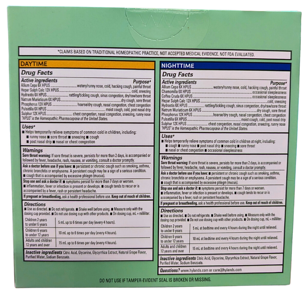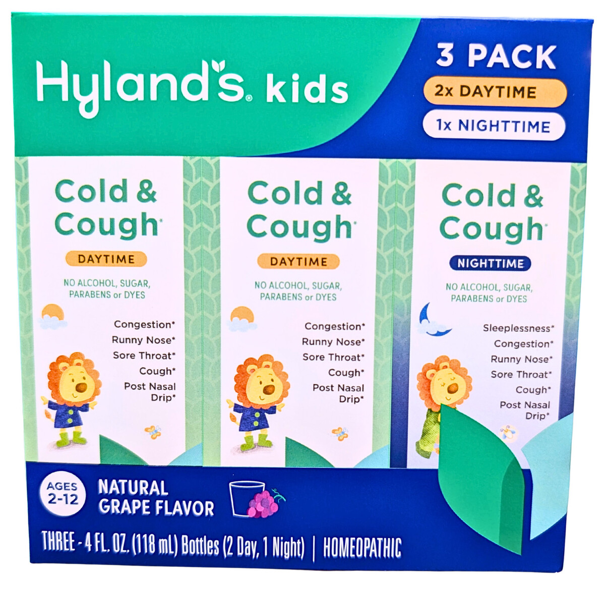 Hyland's Kids Cold & Cough Day & Night Grape Flavor 3 Packs x 4 Fl Oz EXP 05/28