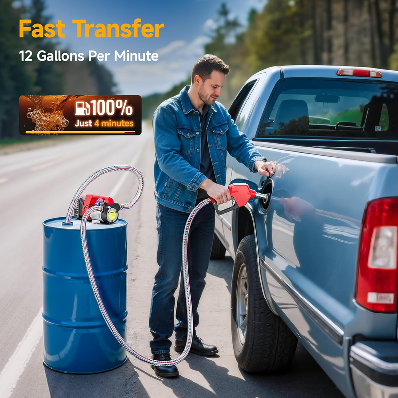 12GPM Fast Transfer: Transfer fuel quickly and easily with this pump, which has a copper motor and delivers 12 gallons per minute. This fuel transfer pump can draw liquid from a maximum depth of 16.4 feet and lift it to a height of up to 32.8 feet