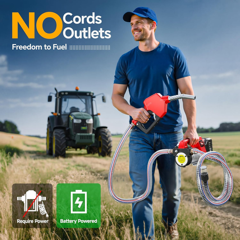 Cordless for Easy Use Anywhere: The cordless fuel transfer pump offers the ultimate convenience by eliminating tangled cables, making it easy to carry and ideal for farming and camping. Enjoy the freedom to tackle tasks without being tethered to an outlet