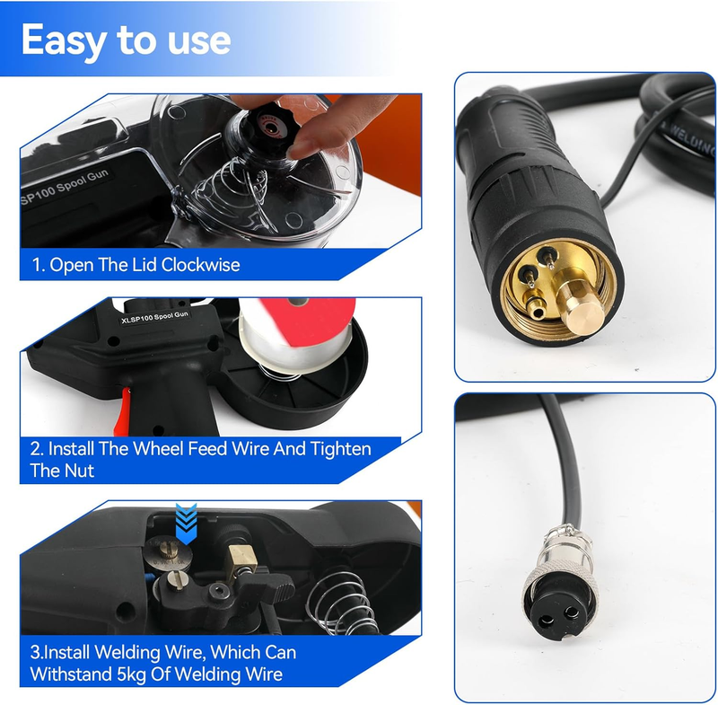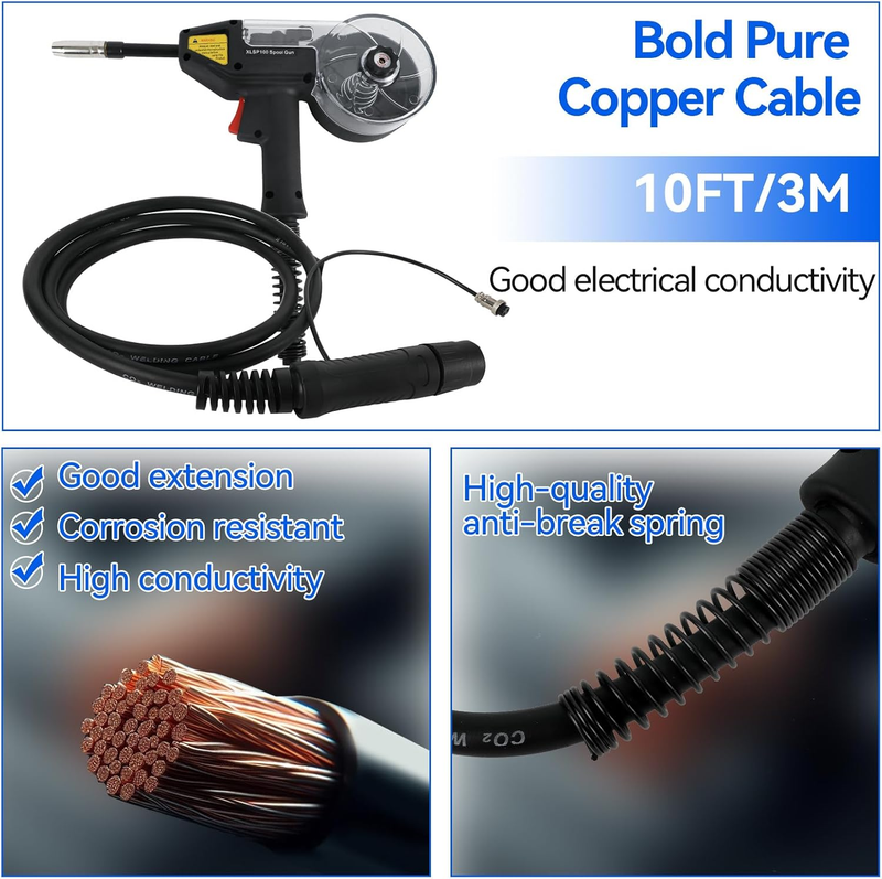 High Amperage Output: With a powerful 150Amp capacity, this spool gun ensures efficient and smooth wire feeding for consistent welding performance.Good length 3M (10FT) on the cable, plenty to climb into cars/trucks for welding cages and rollbars