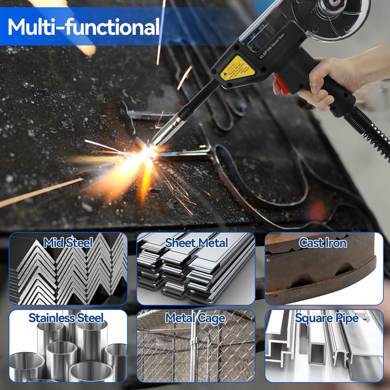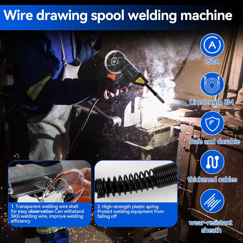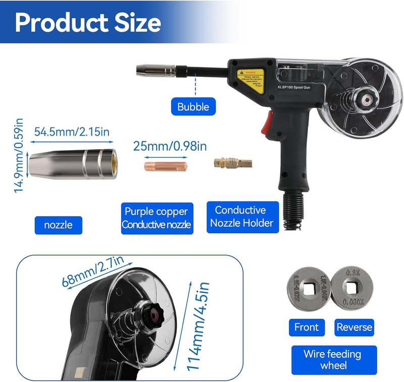 What you get: 1 x Wire Drawing Welding Gun with a 3M (10FT) line length for flexible operation, 2 x durable nozzles for optimal gas flow and protection, 2 x conductive nozzles to ensure efficient electrical conductivity, 2 x wire feeding wheels for precise and consistent wire delivery