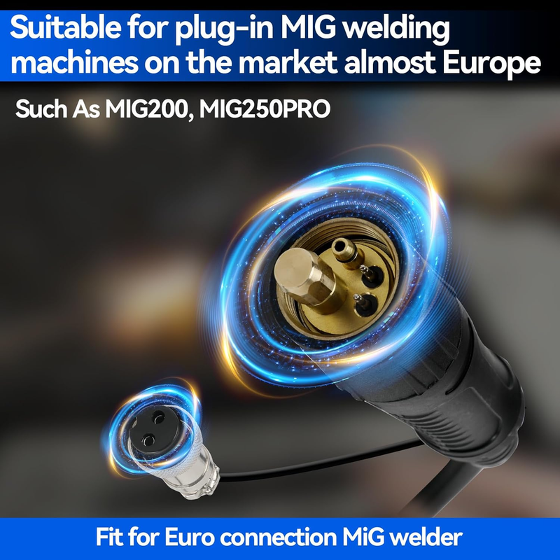 Versatile Compatibility: Suitable for most welding machines with a European plug rear, making it an ideal accessory for popular models like the MIG-250 Pro and MIG-200,Please carefully check Picture 2 before purchasing to ensure that your interface is exactly the same as ours.