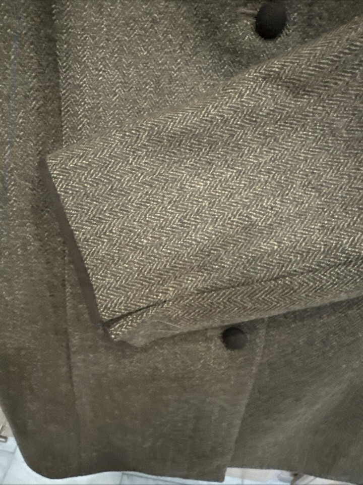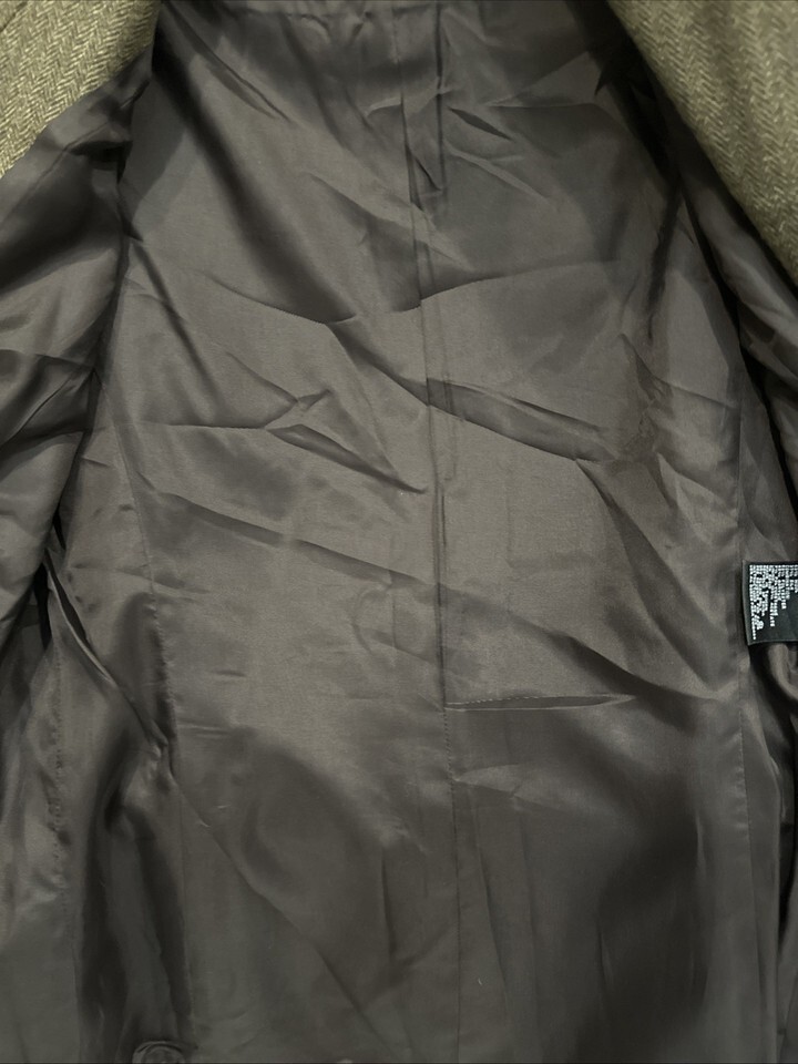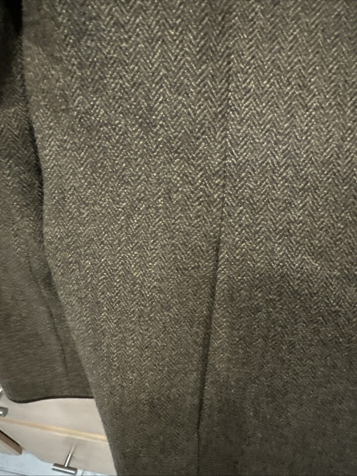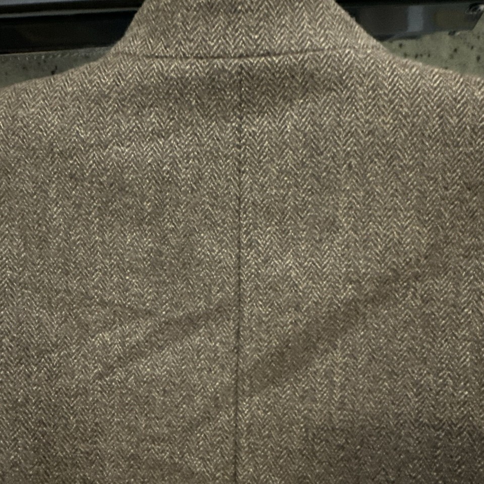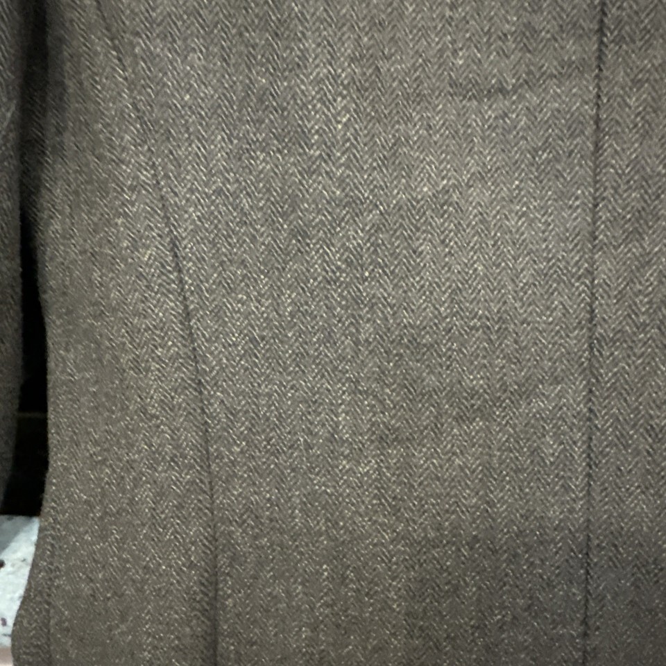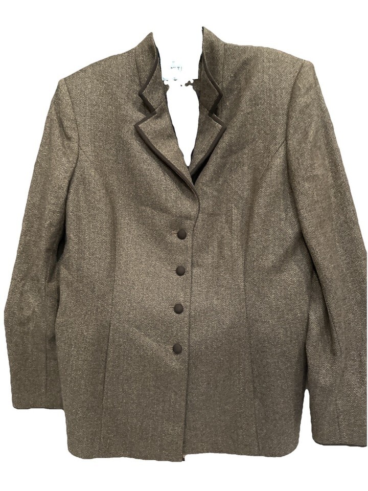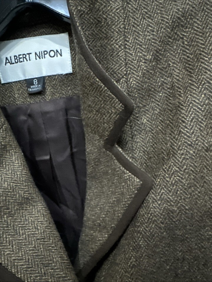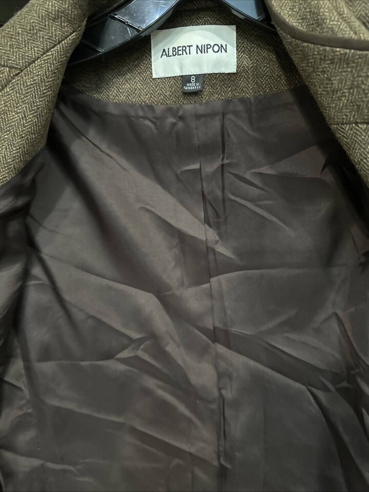 Albert Nipon Brown Wool/Silk Lined Buttoned Size 8 Jacket Herringbone Pre Owned