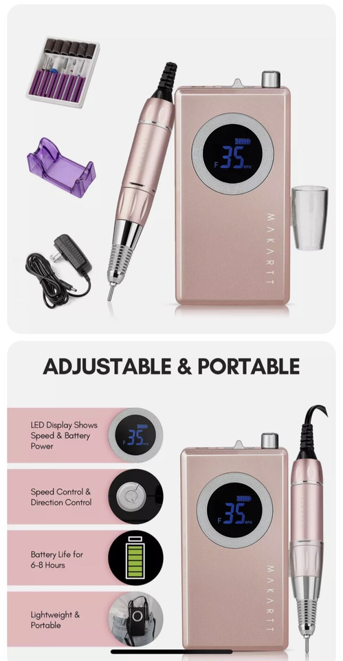 Rechargeable Nail Drill Electric Nail File Pink Stephanee 35000RMP Professional