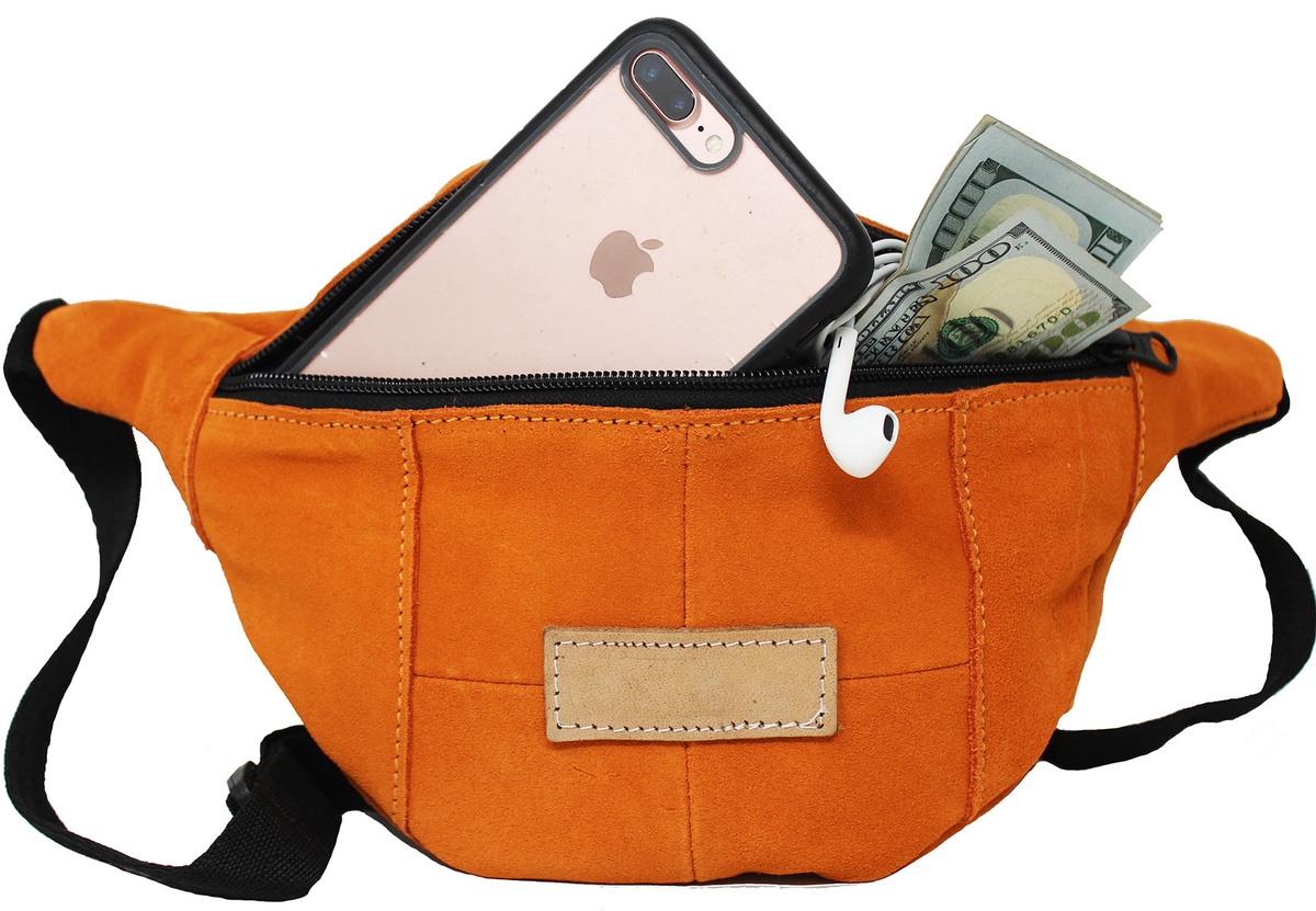 Challenger casual fanny pack waist bag is hand-crafted from soft faux suede fabric. Easily adjustable nylon strap for the perfect fit. Double stitched throughout to ensure durability. Safely holds all essentials such as phone, wallet, keys, etc. Measures 13" long x 7" tall. Available in other colors!