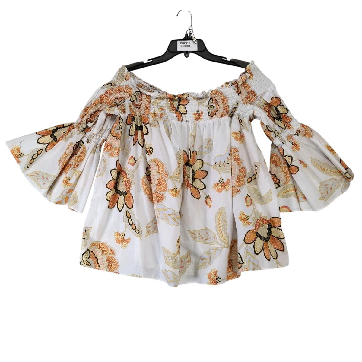Lauren Conrad Off-Shoulder Boho Peasant Blouse Women's XL Flare Sleeves Smocked