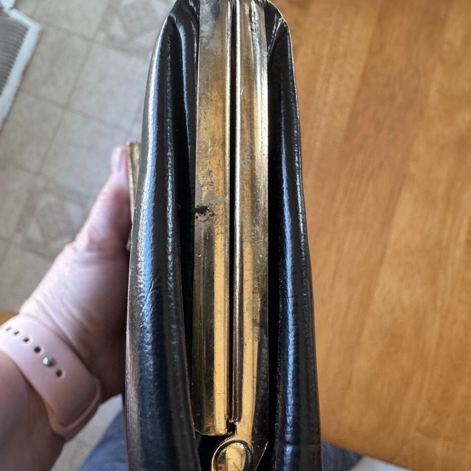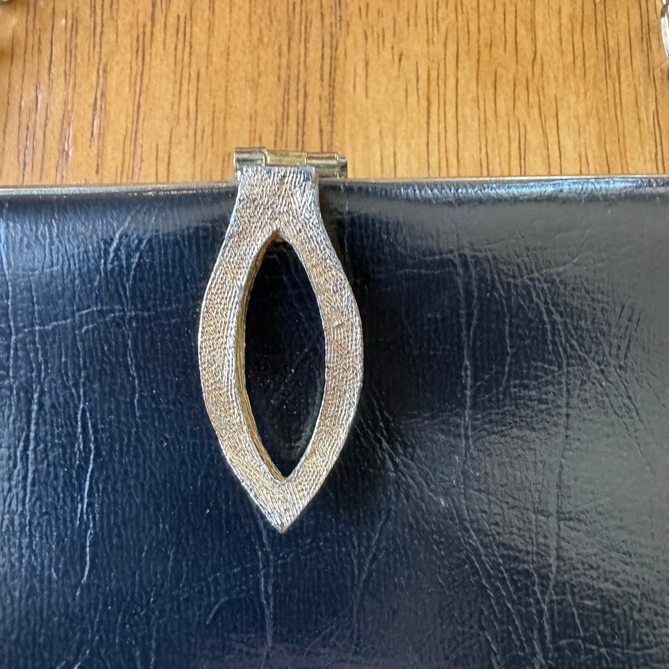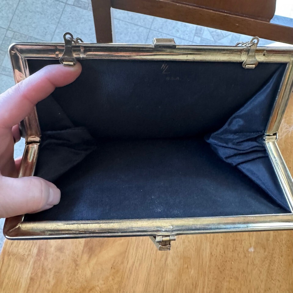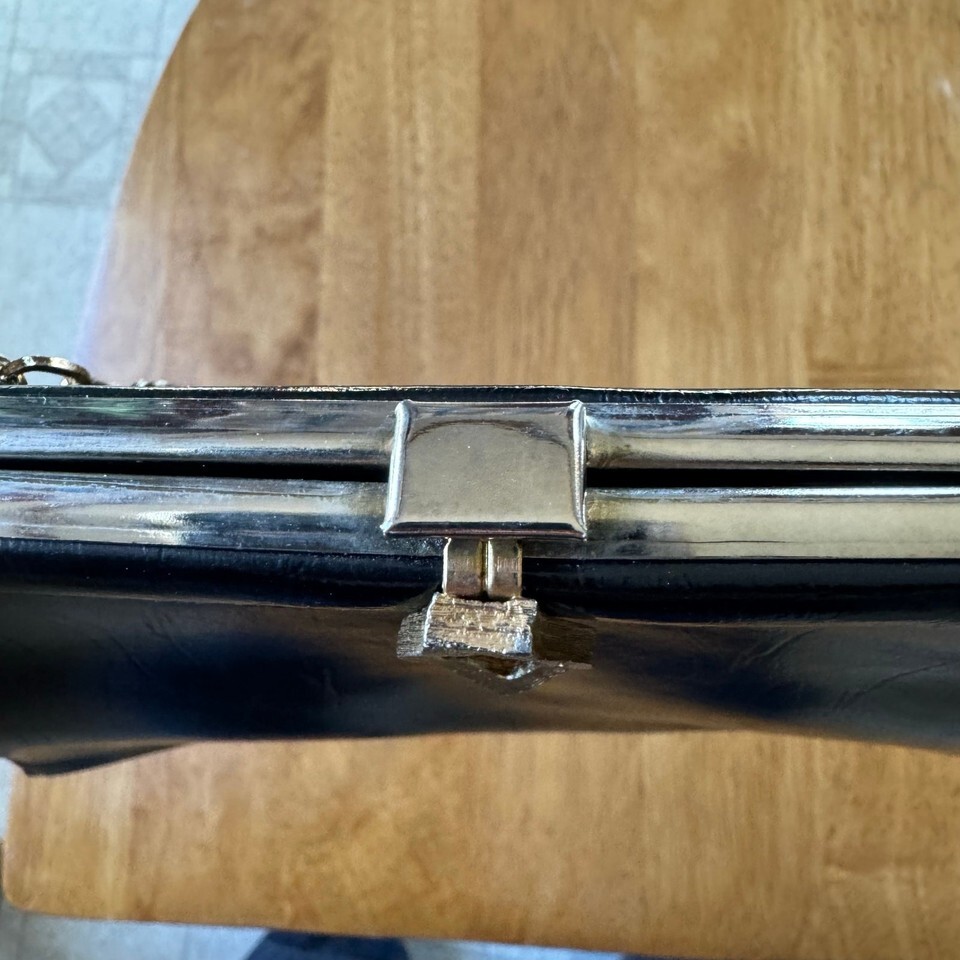 Vintage Harry Levine USA Black Leather Clutch Purse 6x9 Gold Metal Chain MCM
