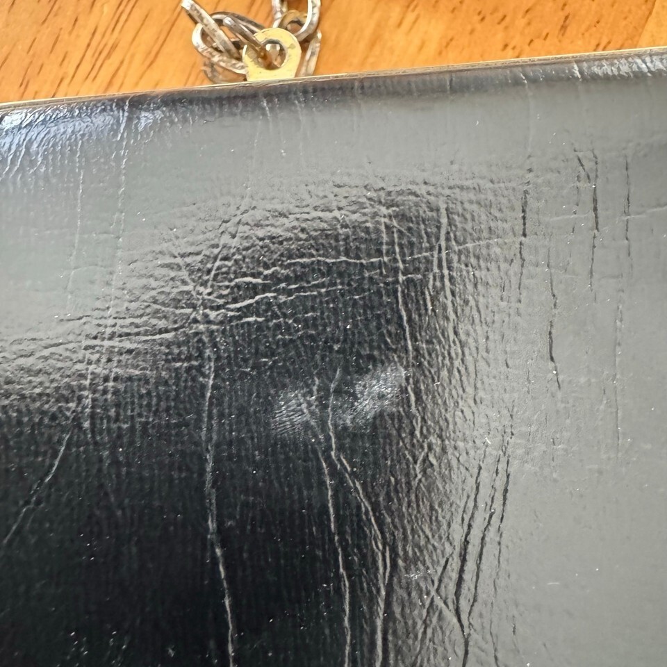 Vintage Harry Levine USA Small Black Leather Evening Purse 6x9 Gold Chain MCM