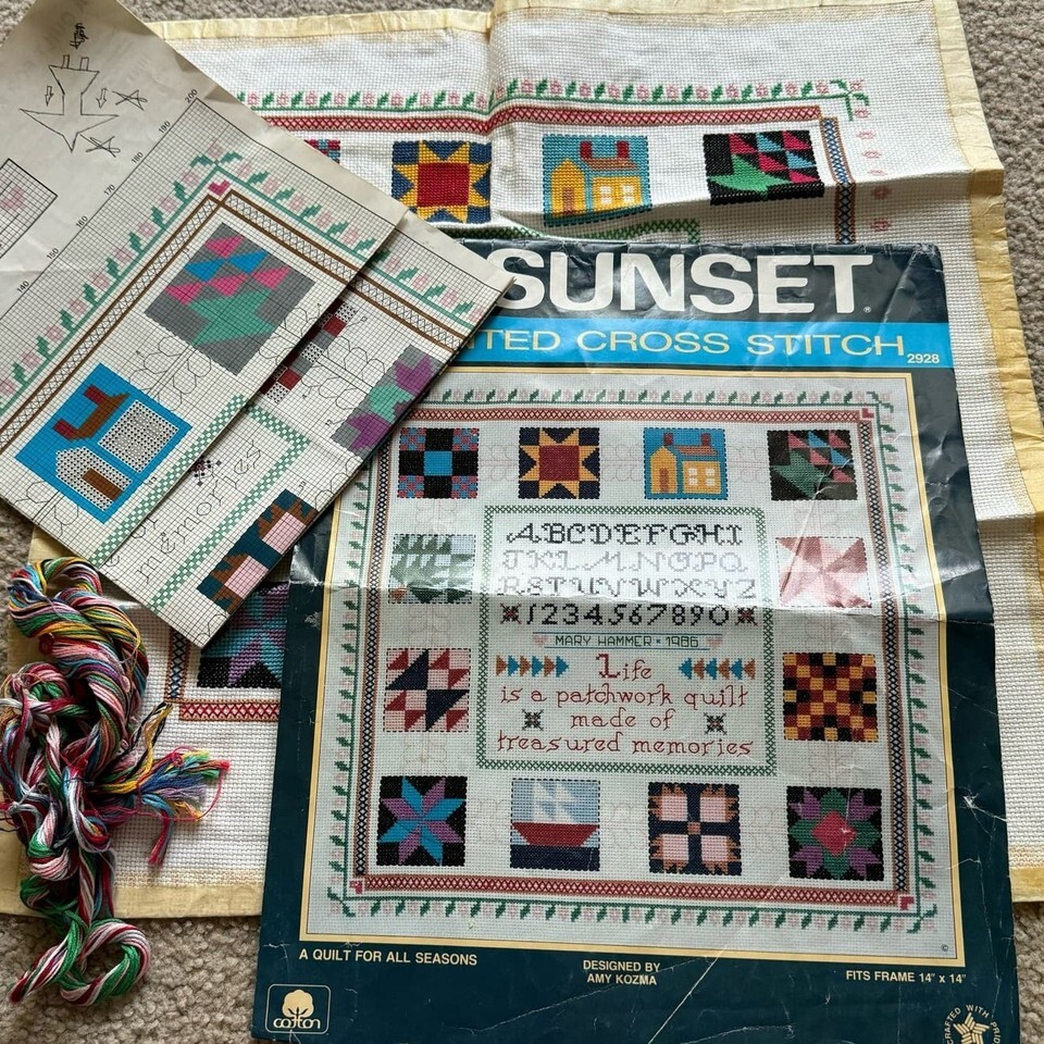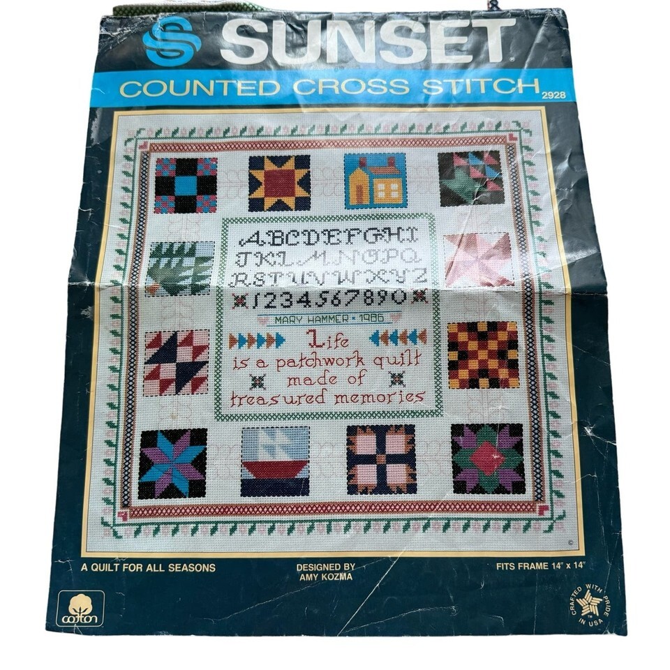 Sunset Quilt For All Seasons Cross Stitch Kit Started 14x14 Country Quilt Blocks