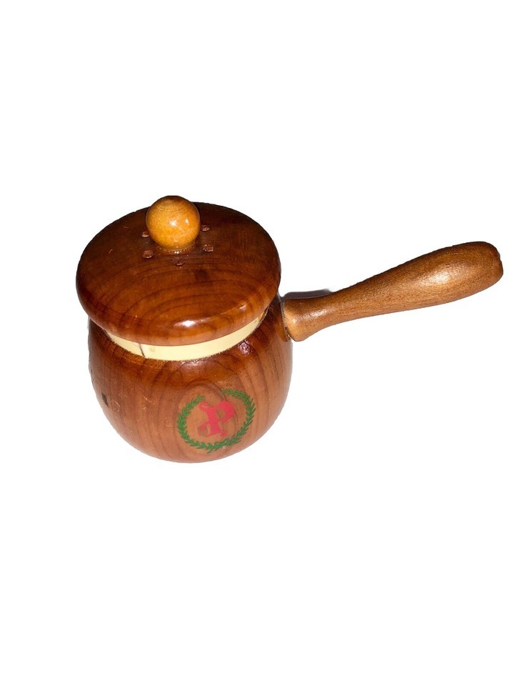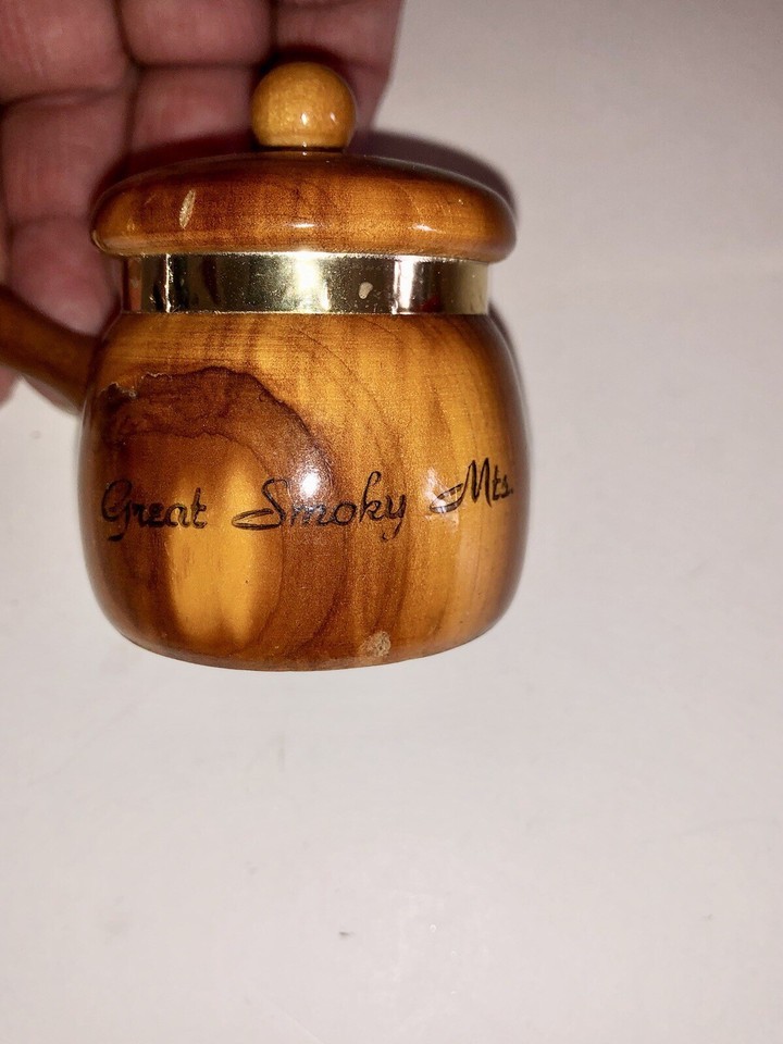 Vintage Pair Great Smoky Mountains TN Wood Pot Salt & Pepper Shakers