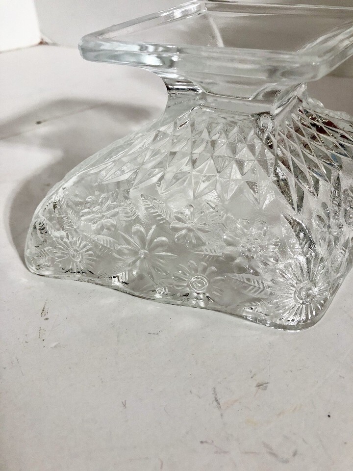 5 Vtg INDIANA GLASS Clear PINEAPPLE And FLORAL Compote DISH Bowl Footed Pedestal