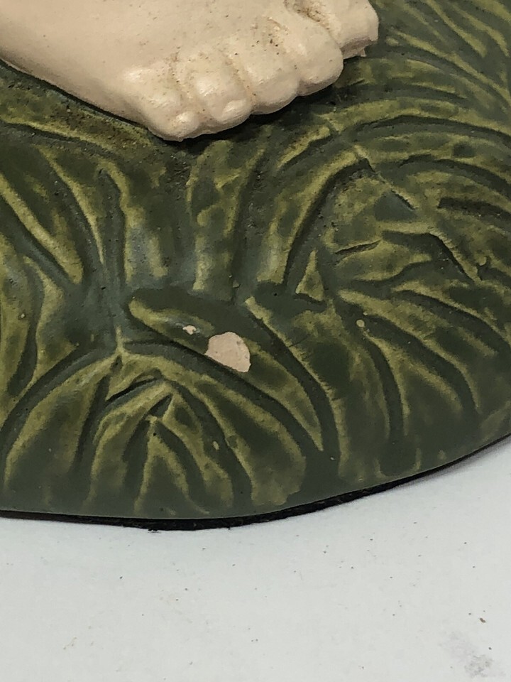 Small chip on the back side of the girl in the grass. Not seen when displayed.