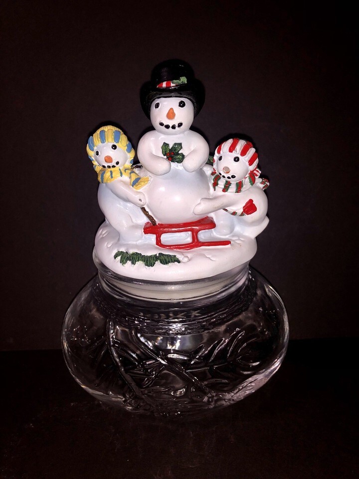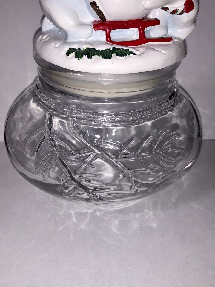 Fitz and Floyd THE FLURRIES Glass Canister Jar clear Snowman Country Cottage
