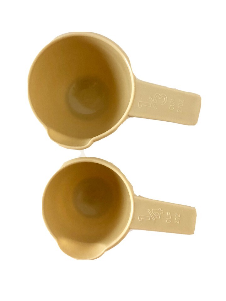 Vintage Plastic Measuring 1/3 Cup 1/4 Cup Hong Kong Footed Tan Cream Beige Pour.