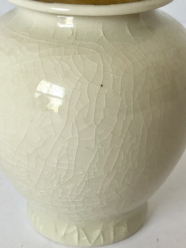 Crazing present all over. Adds character. Beautiful peacock and floral colors.