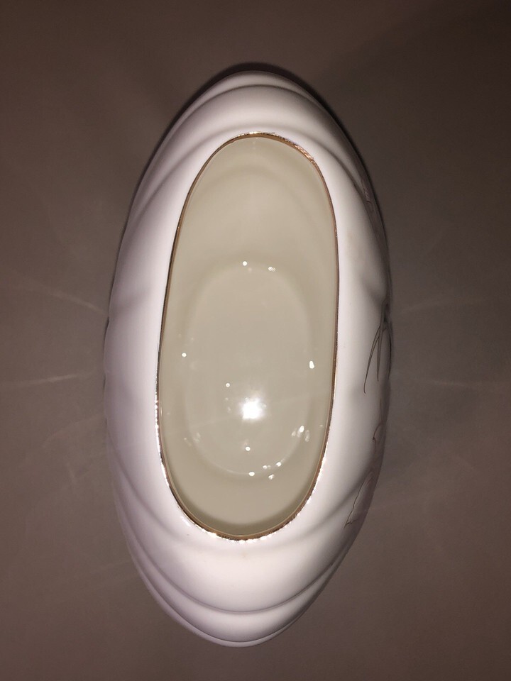 VTG Fine China Japan Iris Flower Butterfly Wide Mouth Vase 24K Gold Trim 6.5” T
