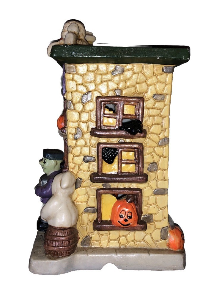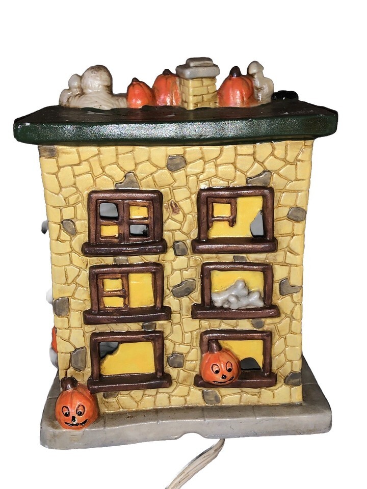 Vtg Halloween RIP Tombstone Factory Spooky Ceramic Haunted House Village Pumpkin