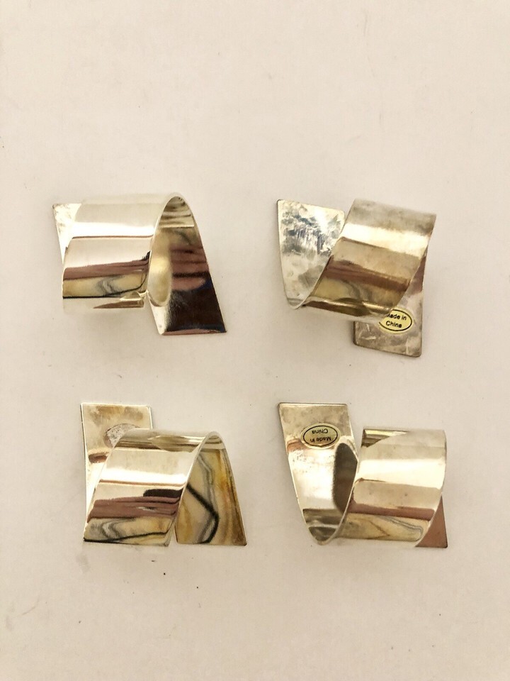 4 Vintage Twisted Curled Silver Colored Metal Napkin Holder Rings