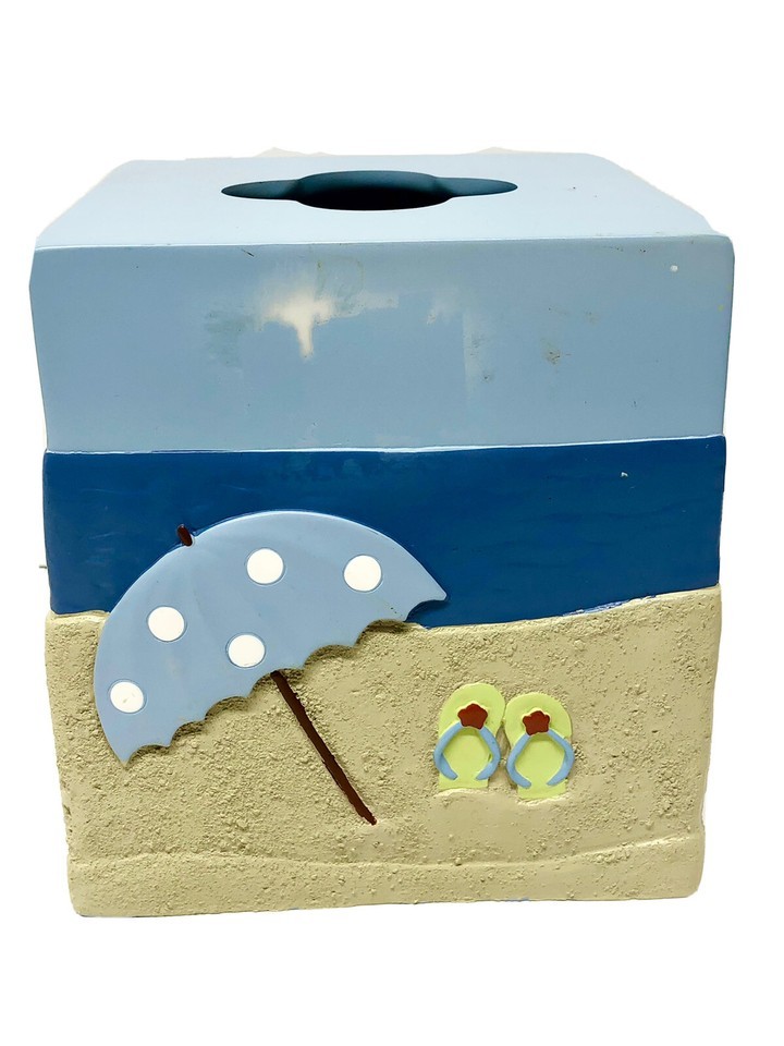 Kathy Middlebrook Beach Ocean Tissue Box Cover SeaShells Seahorse Boat Umbrella