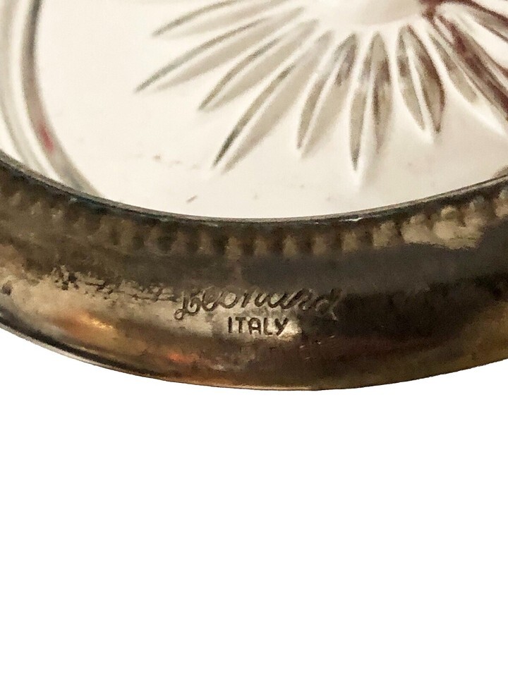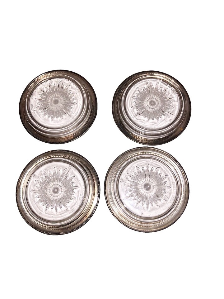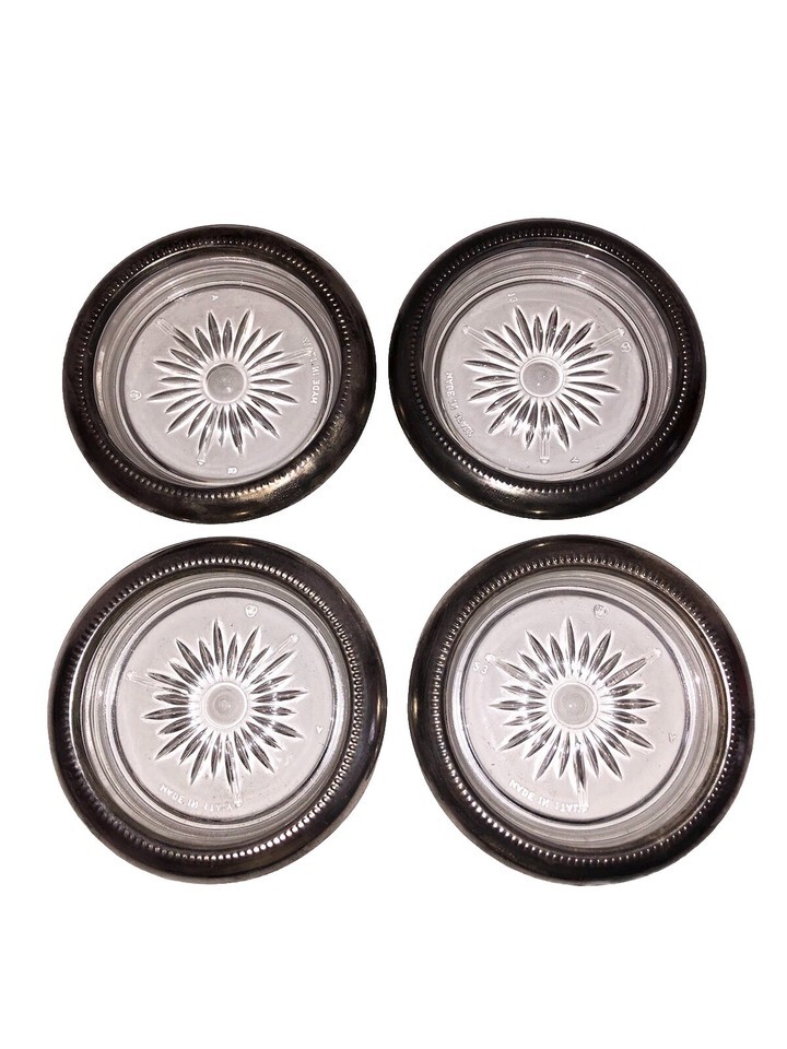Set of 4 Vintage Leonard Silver Plate Crystal Coasters Starburst Pattern Italy