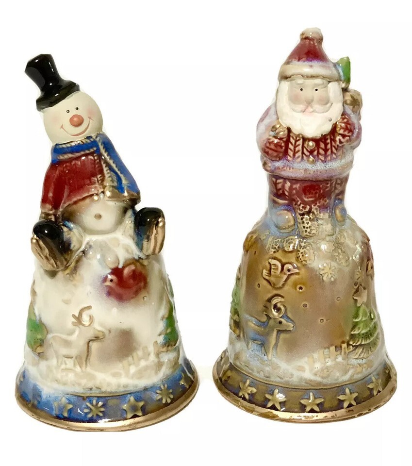 Vintage Handmade Porcelain Ceramic Bell Christmas Santa Snowman Reindeer Star.