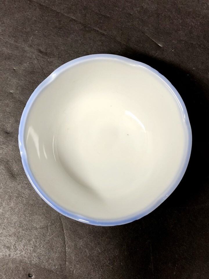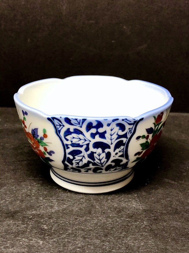 Vintage Asian Chinese Japanese Porcelain Rice Soup Bowl Red Floral Scalloped Rim