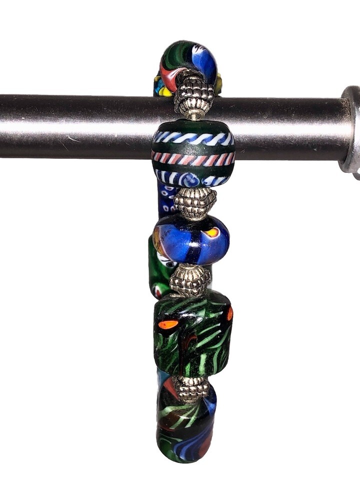 Beautiful Vintage Venetian Style Old African Glass Beads Stretch Bracelet