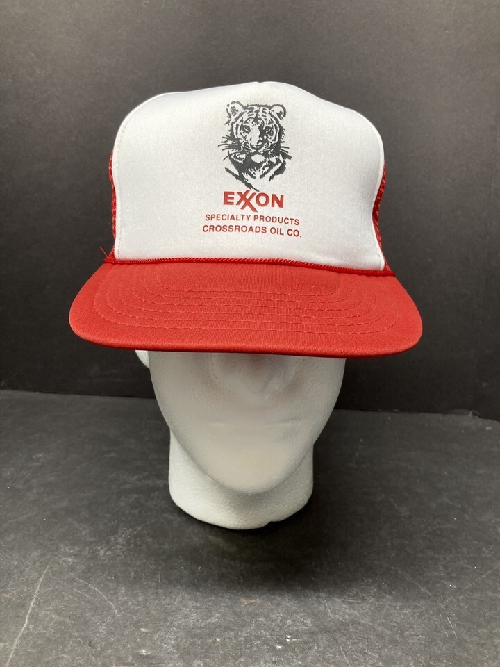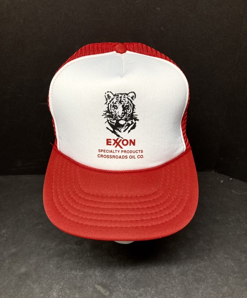 Vintage 1975 Exxon Tiger Logo Snapback Hat Mesh Trucker Cap VTG Foam Rope NWT