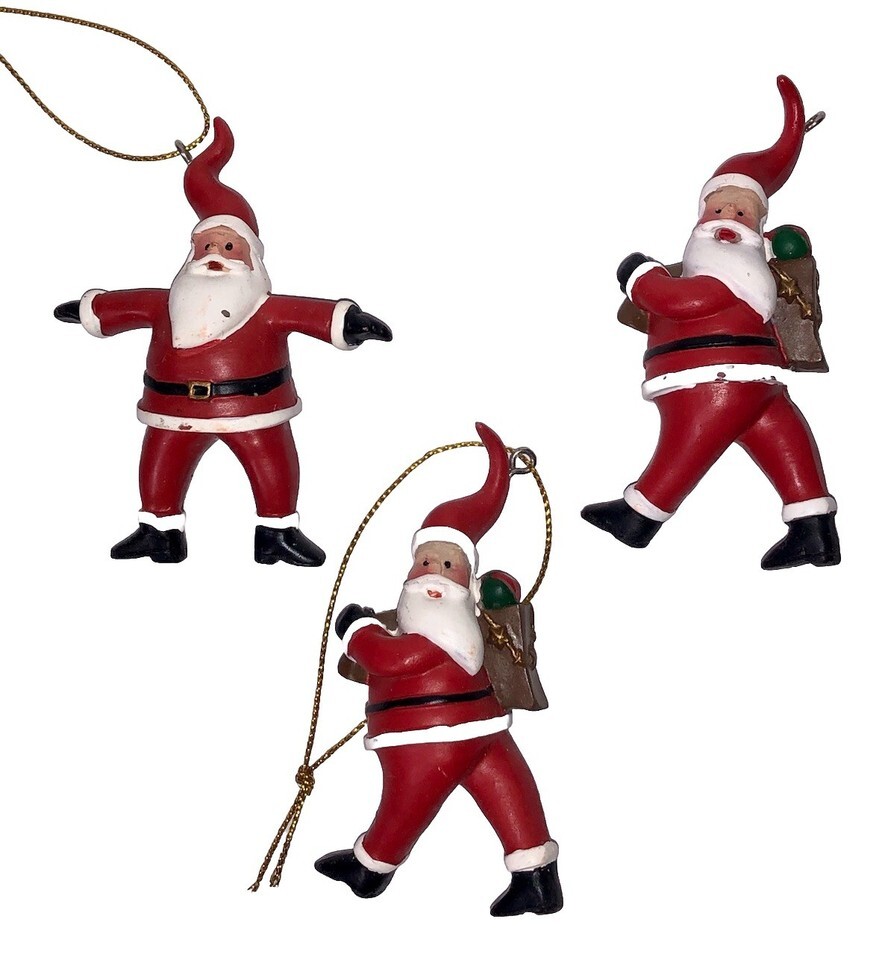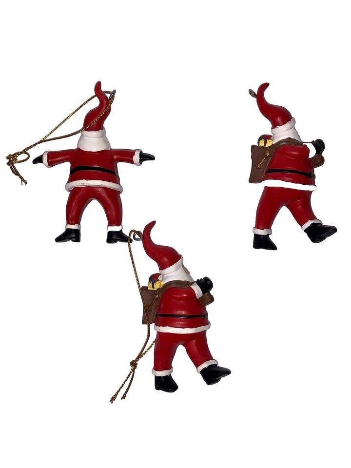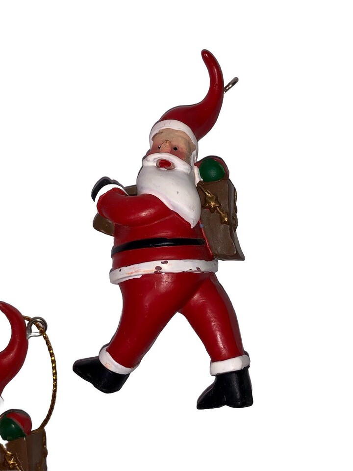 Set Of 3 Vintage Santa Red Suit Resin Christmas Tree Ornaments Toy Bag 3” Tall