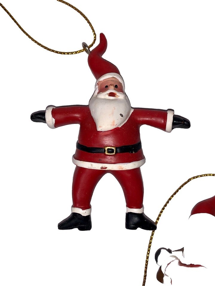 This set of 3 vintage Santa Claus red suit resin Christmas tree ornaments features a small size of 3 inches tall, perfect for adding a festive touch to your holiday decor. Each ornament is shaped like Santa Claus and comes in a multicolor design. Made of resin, these decorative hanging ornaments are original and part of a Christmas-themed collection. With a vintage feel and charming details, they are a nostalgic addition to any Christmas tree.