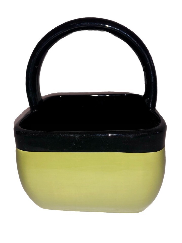 Halloween Frankenstein Basket Candy Bowl Ceramic Spooky Green Black 7” X 5.5”