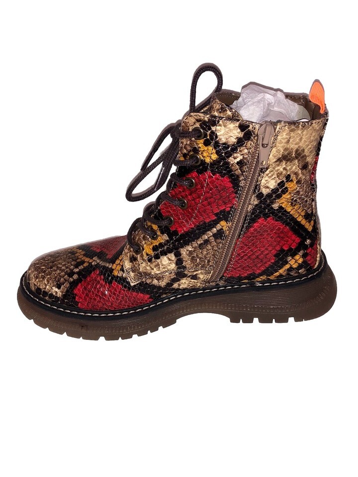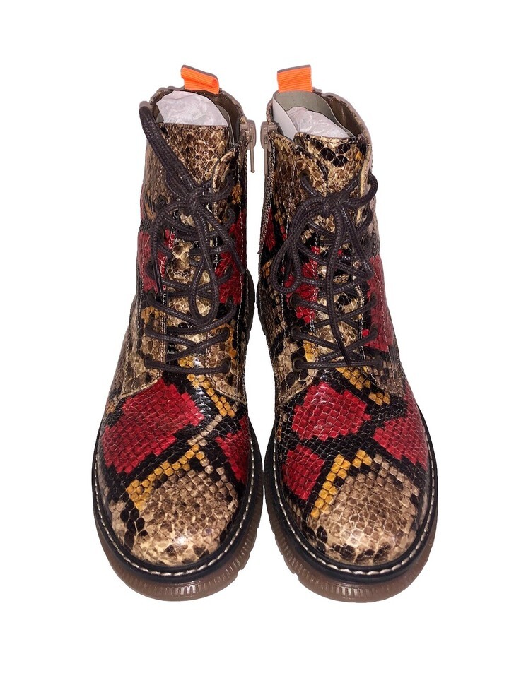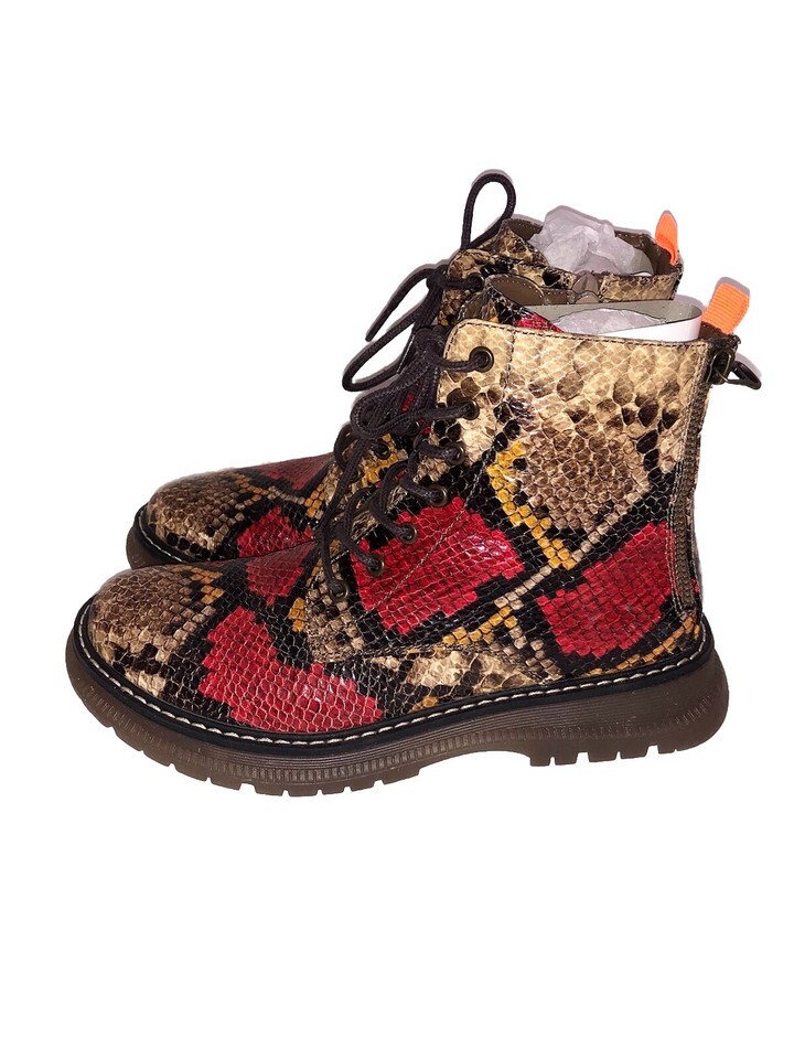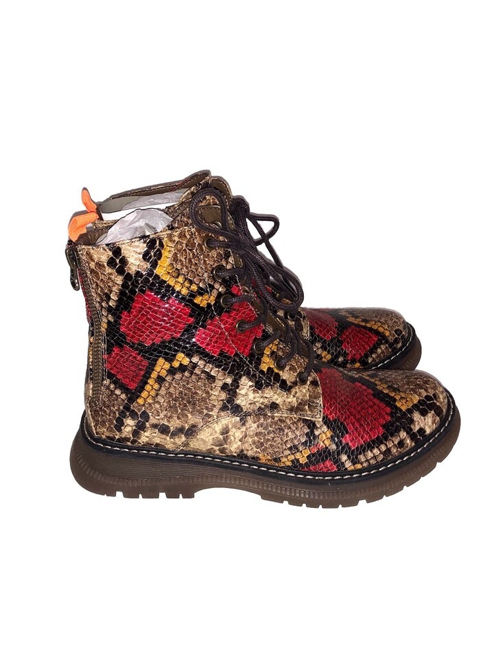 Jellypop Combat Boots Women’s Size 6.5 M Faux Snakeskin Round Toe Lace Up Snake